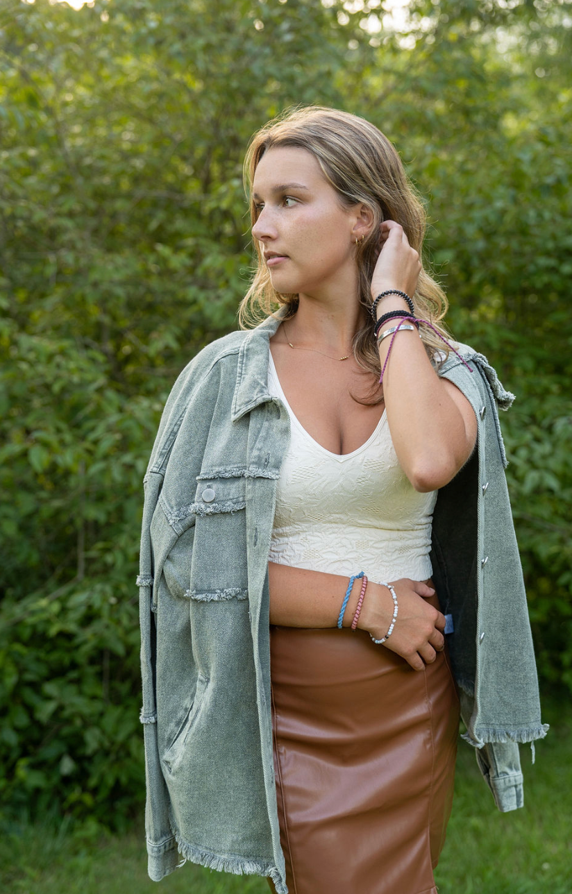 This eye-catching top features a V neckline, creating a delicate and feminine look. Intricate lace pattern adds a layer of texture and depth, while the crop cut offers a contemporary flair.